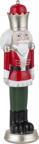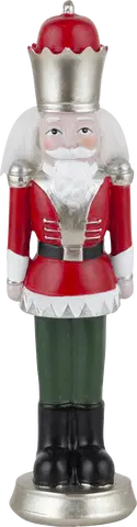 Denne dekorative nøtteknekker-figuren fra Nova Life er et sjarmerende innslag til juledekorasjonen. Med sin klassiske rød-grønne fargekombinasjon og høyde på 29 cm blir den et iøynefallende blikkfang. Figuren er laget av solid polyresin, noe som gir den tyngde og holdbarhet. Den røde fargen er dyp og varm, mens grønne detaljer skaper en fin kontrast. Utformingen med nøtteknekker-motivet gjør denne figuren til et tradisjonelt og kjent julesymbol. Nøtteknekkerens enkle, men særpregede uttrykk vil kaste et koselig skjær over stuen eller et annet rom du ønsker å dekorere. Denne robuste nøtteknekker-figuren er en holdbar klassiker som vil bli en kjær gjest i mange år fremover.