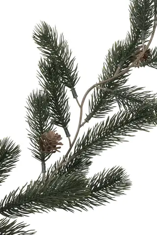 Girlanderen er laget av naturlige materialer og vil passe perfekt inn i et nordisk eller rustikt interiør. Den grønne fargen gir den et friskt uttrykk, samtidig som konglene tilfører en ekstra naturlig touch. Denne dekorasjonen er perfekt for å skape en koselig stemning på kjøkken, stue eller i gangen når høsten og vinteren kommer.
