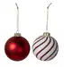 Legg til en festlig touch på juletreet ditt med disse elegante julekulene fra Nova Decor & Lighting. Dette settet inneholder to kuler med en diameter på 8 cm, perfekt for å skape en vakker og balansert dekorasjon. Den ene kulen er rød og hvit stripet, mens den andre er i en klassisk rød nyanse – en flott kombinasjon som tilfører varme og tradisjonell julestemning.