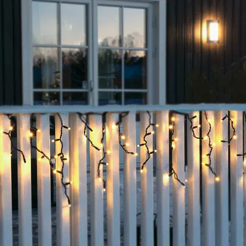 Bygg Sammen Drops Istapp er et unikt påbyggingsett for utendørs bruk. Med sine 100 integrerte LED-lys skaper denne 2,5 meter lange lysslyngen en magisk og stemningsfull belysning. Hver enkelt ""istapp"" har et stilrent, minimalistisk design i sort farge. Konstruksjonen er svært robust og tåler å stå ute hele året med sin IP44-klassifisering for vær- og vannbeskyttelse.