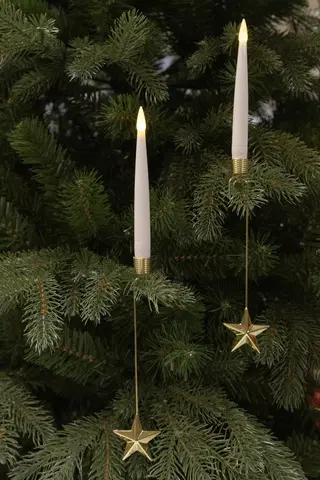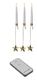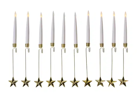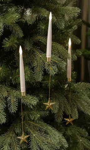 Dette settet med juletrelys fra Nova Decor & Lighting bringer en klassisk julefølelse inn i hjemmet. De 10 LED-lysene er utstyrt med dekorative stjerner i gull, noe som gir en elegant og varm glød. Hver veke har en flammeeffekt som simulerer ekte stearinlys, men uten brannfare. For enkel styring følger det med en fjernkontroll, slik at du kan justere lysstyrken og skape den stemningen du ønsker. De hvite lysene med flammeeffekt gir en koselig atmosfære og tilføyer et ekstra snev av julestemning til juletreet. Settet har IP20-klassifisering og er designet for innendørs bruk. Lysene er batteridrevne og har en høyde på 15,2 cm.