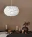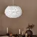 Eos fra UMAGE er en unikt designet lampeskjerm laget av ekte gåsefjær. Den nordiske utformingen gir et mykt og varmt lys som skaper en behagelig atmosfære i rommet. Lampen har en diameter på 45 cm og en høyde på 30 cm, noe som gjør den egnet som både gulv-, bord- og taklampe.
