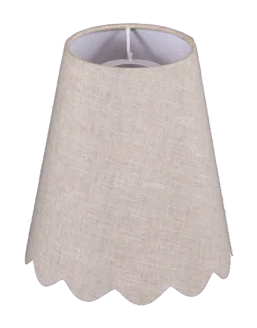 Julia lampeskjerm kombinerer klassisk form med et delikat og moderne uttrykk. Den lyse beige tekstilen gir en varm og naturlig følelse, mens den bølgete kanten nederst tilfører en sjarmerende og elegant detalj.