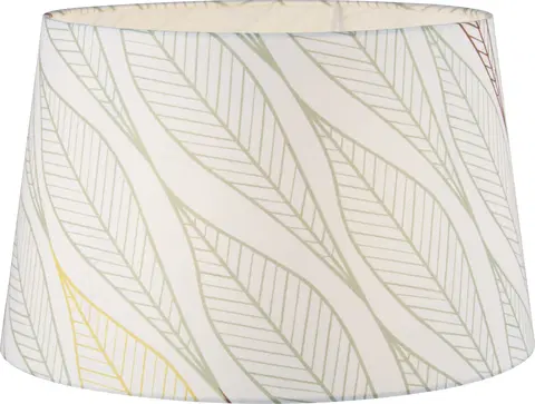 Løv er en vakker og dekorativ lampeskjerm i bomull med delikate bladmotiv som gir et mykt og naturlig uttrykk. Den hvite fargen gjør skjermen lett å kombinere med ulike lamper og interiørstiler, samtidig som de subtile bladene tilfører en elegant detalj.