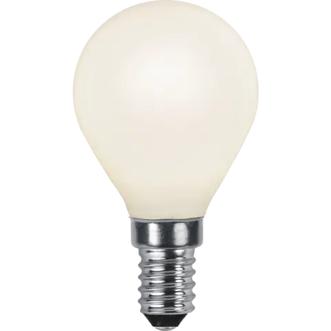 LED-teknologien gir opp til 15 000 timers levetid, noe som betyr at du slipper å bytte pære på lenge. Denne lyspæren er perfekt for taklamper, vegglamper og andre armaturer med E14 sokkel. Den er ikke dimbar, men sprer jevnt lys rundt seg med sine 250 lumen. Enkelt og energibesparende belysning i hvit opal utførelse som sprer mykt, naturlig lys.