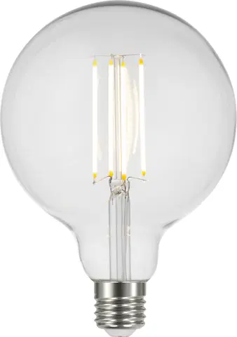LED-pæren i globeform gir et varmhvitt og behagelig lys på 2700 kelvin. Med en lysstyrke på 300 lumen, tilsvarer den en halogenpære på 35 watt. Denne dimbare LED-dekorpæren har en E27-sokkel og forbruker bare 4 watt, noe som gir lang levetid på 25 000 timer. Pærens klare glasskuppel og klassiske globeform passer perfekt til mange ulike armaturer. En energieffektiv og miljøvennlig løsning for hjemmet.