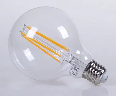 Eco LED Deco Globe G95 fra Green Light er en dekorativ LED-pære med klart glass og rette filamenter som gir et stilrent og klassisk uttrykk - perfekt for åpne lampeskjermer, pendler og dekorative armaturer. Med en varm fargetemperatur på 2200K, gir pæren et ekstra varmt, gyllent lys - ideelt for å skape en lun og hyggelig atmosfære.