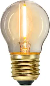 LED kronepære fra Lampehuset med soft glow-effekt. Denne energieffektive pæren gir et behagelig, varmt lys tilsvarende en 10W halogenpære, men bruker kun 0,8W. Den gylne fargen skaper en hyggelig stemning. Pæren har en sokkel i E27-standard som passer de fleste armaturer. Perfekt for taklamper, arbeidslamper eller andre steder du ønsker en LED-lyskilde med lavt strømforbruk. En miljøvennlig løsning for hjemmet eller kontoret.