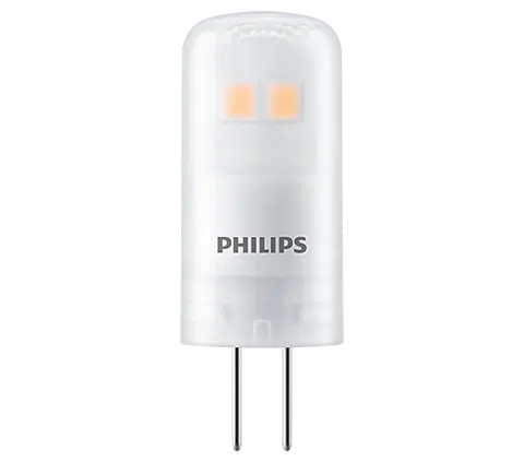 LED G4 fra Philips er en kompakt og energieffektiv lyskilde. Denne 1W LED-pæren gir like mye lys som en tradisjonell 10W halogenpære, men med betydelig lavere strømforbruk. Med en varm fargetemperatur på 2700 Kelvin gir den et mykt og behagelig lys som passer perfekt til hjemlige omgivelser. LED-teknologien gir en imponerende levetid på opptil 15 000 timer, noe som tilsvarer over 15 år ved normal bruk. G4-sokkelen gjør pæren egnet for bruk i mindre armaturer og innfelte spotlights. Selv om den ikke er dimbar, er Philips G4 LED et energismart alternativ som kombinerer kvalitetslys med lang levetid.