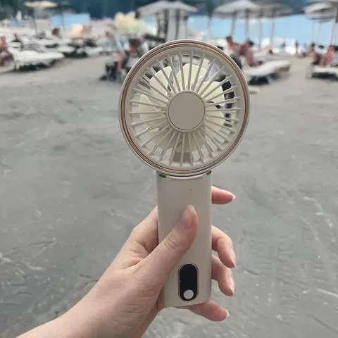 Vifte Mini oppladbar 19cm beige