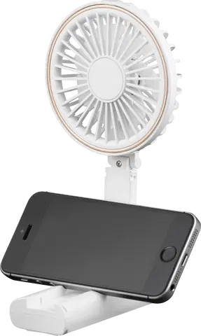 En ekstra smart funksjon er den integrerte mobilholderen, som gjør viften til en multifunksjonell enhet perfekt for arbeid, reiser eller underholdning. Med sitt kompakte og moderne design passer den i vesken eller ryggsekken, og dens brukervennlighet gjør den til en praktisk følgesvenn på varme dager.